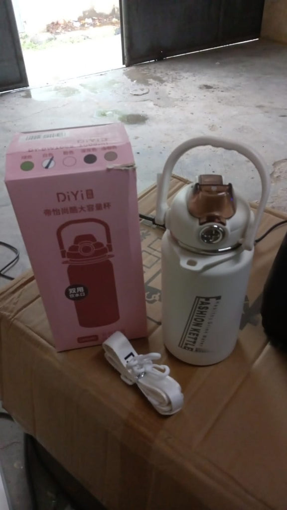 Stainless Steel Vacuum Insulated Water Bottle / cup | Leak Proof Flask for Tea Coffee | Reusable Water Bottle with Handle & Adjustable Strap| Bottle for Hot & Cold Drinks Wide Mouth Water Flask (1000 ML / 1 Pc / Mix Color)