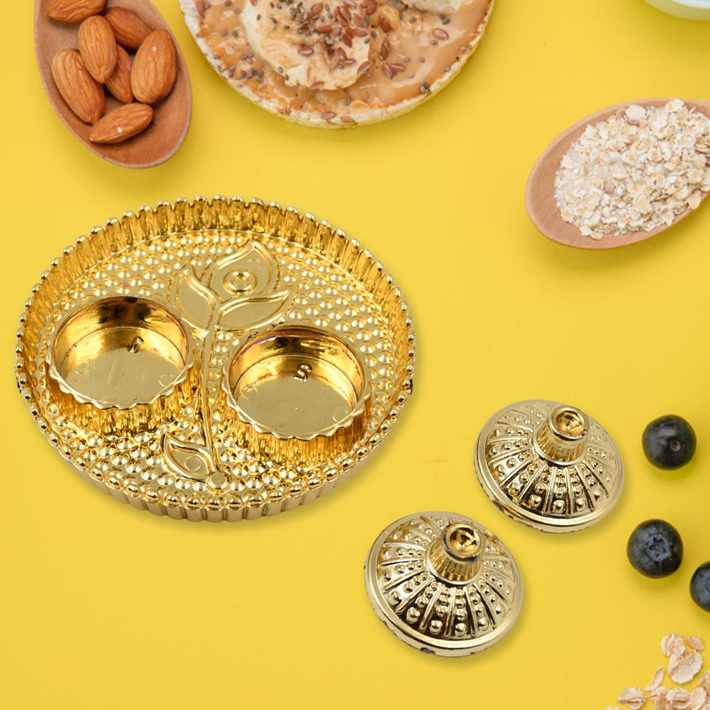 Round Shape Special Puja Thali, Kumkum Thali Holder, Pooja Return Gift, Indian Housewarming Gifts, Brother / Bhai / Bhabhi / Sister / Family for Diwali (1 Pc / Small)