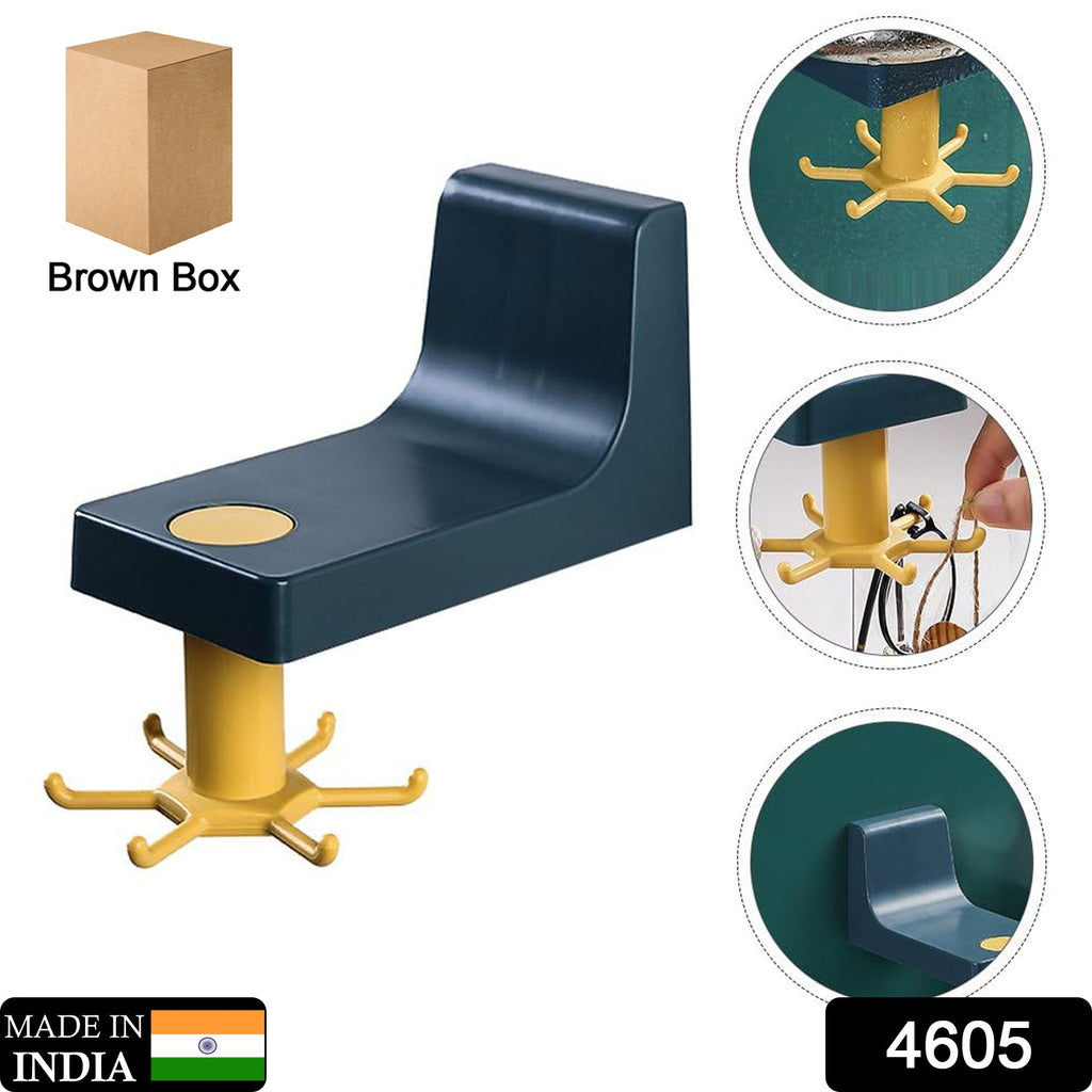 4605  360 Degree Rotating Self Adhesive Plastic Wall Hook Hanger Multifunctional Hanger with 6 Heavy Duty Claw Hooks