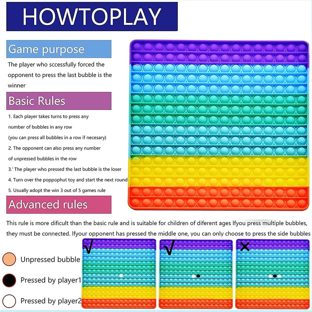 The stress reliever toy, with no pieces to lose, you can push pop fidget toy or invite a friend to a fast brain game of Last One Lost wherever you are. Can be played in a car, plane, restaurant, camping, school, office, and anywhere.
